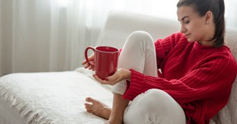 Dressed in a holiday sweater, enjoying the Christmas cheer.